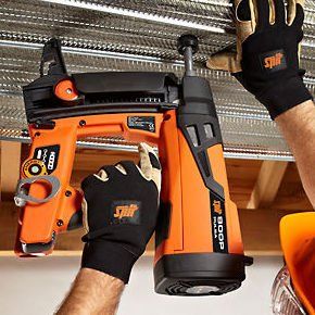 La clavadora de gas spit p800 se usa en el montaje de los perfiles en U y perfiles CW en techo, pared o en el suelo, perfiles angulares pared, perfiles angulares de borde, metal desplegado, las películas de la burbuja y no tejido.