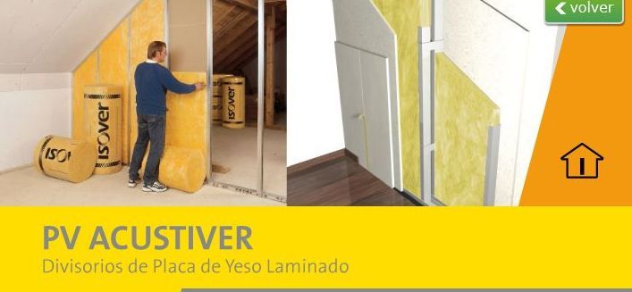Panel pv isover : Es un panel o rollo flexible de lana de vidrio, no hidrófilo y sin revestimiento. Por sus excelentes prestaciones acústicas y adaptabilidad, el panel pv acustiver de isover es una opción óptima para divisorios interiores verticales, especialmente en trasdosados de placa de yeso laminado. Apto para obra nueva y rehabilitación. Mantiene las prestaciones del sistema inalteradas durante toda la vida útil del edificio, no se degradan con el tiempo.